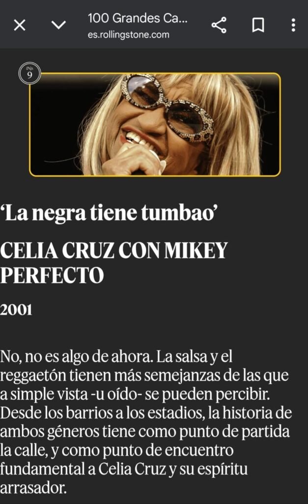 Mikey Perfecto participó como compositor en “La Negra Tiene Tumbao”de Celia Cruz,